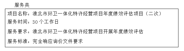 二、项目名称:淮北市环卫一体化特许经营项目年度绩效评估项目(二次)