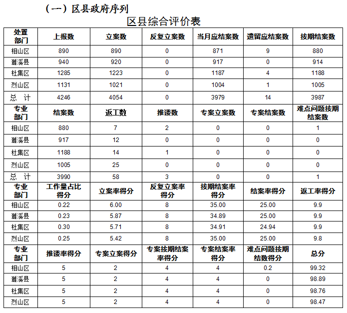 立案问题占比均有所上升,共发现问题663件,其中烈山区259件、濉溪县171件、杜集区137件。
