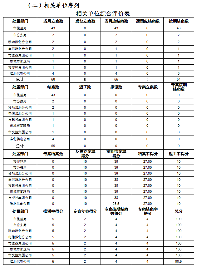 本月共受理立案各类城市管理问题4110件,其中区县4054件,市有关单位56件;应结案4048件,其中区县3993件(含遗留应结案),市有关单位55件(含遗留应结案);结案4045件,其中区县3990件,市有关单位55件,结案率99.93%。